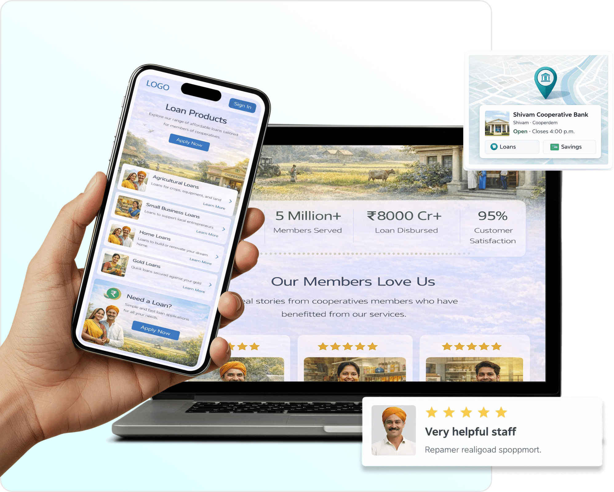 Scale your operations by offering loans, deposits, and member services online through your own website and mobile app. Transforming co-operative societies into digital first institutions.